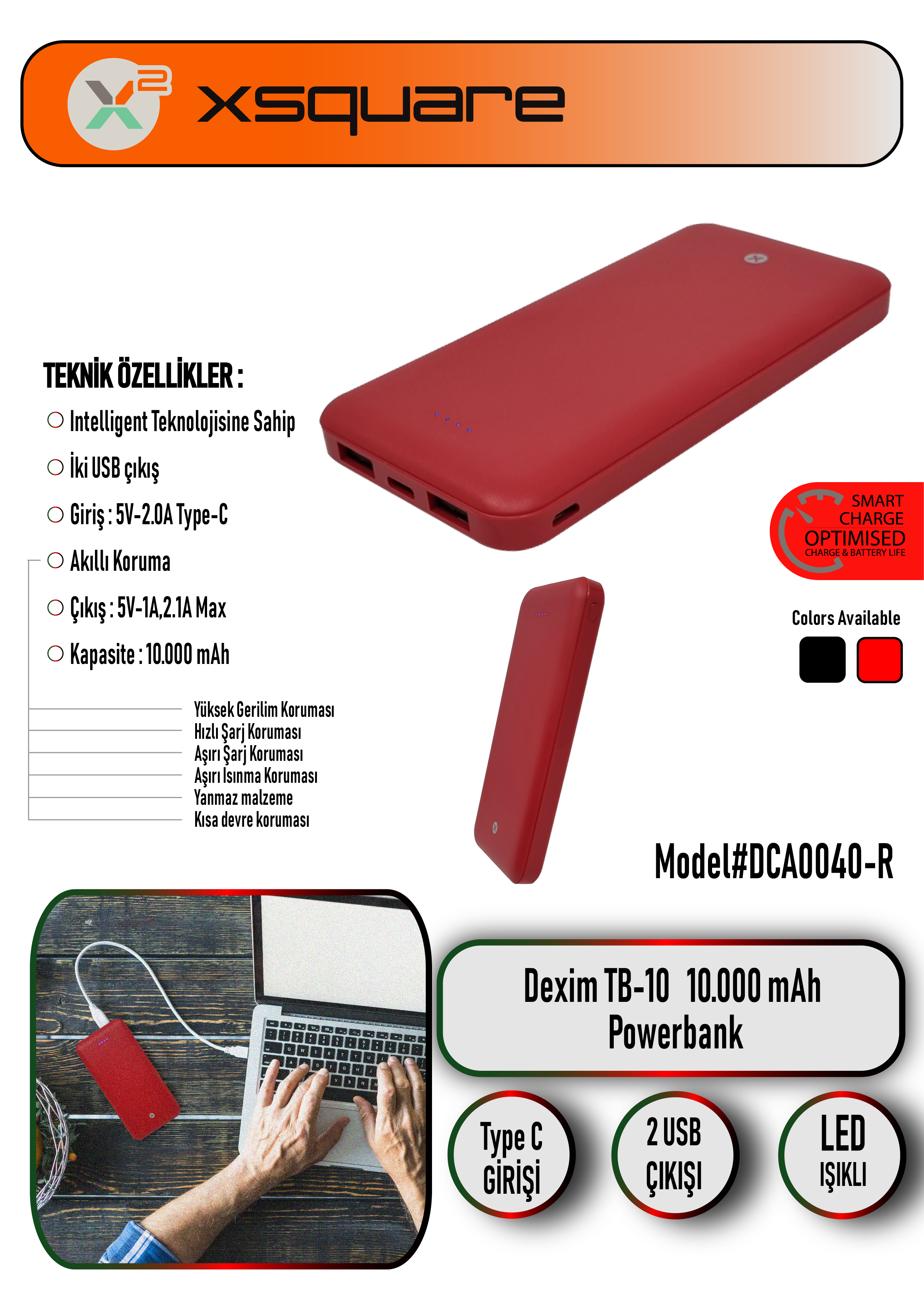 Powerbank-Dexim DCA0040-R Kırmızı TB10-C 10.000Mah Powerbank Type-c